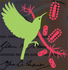 The banknote designer's interpretation of the bird species Eastern Spinebill (Acanthorhynchus tenuirostris).